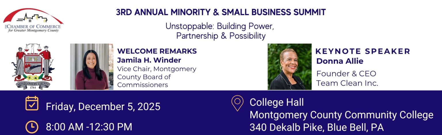Organized in 1913, The Chamber of Commerce for Greater Montgomery County is one of the oldest chambers in Pennsylvania, the largest business association in the County, and the leading business advocate for area businesses.